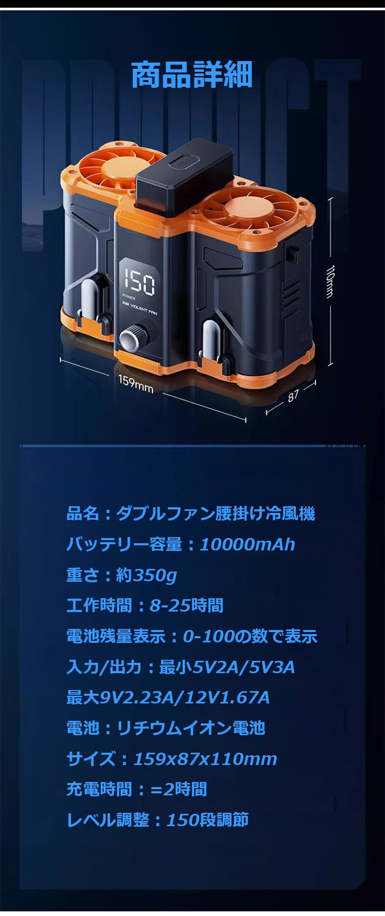 ダブルファン腰掛け冷風機